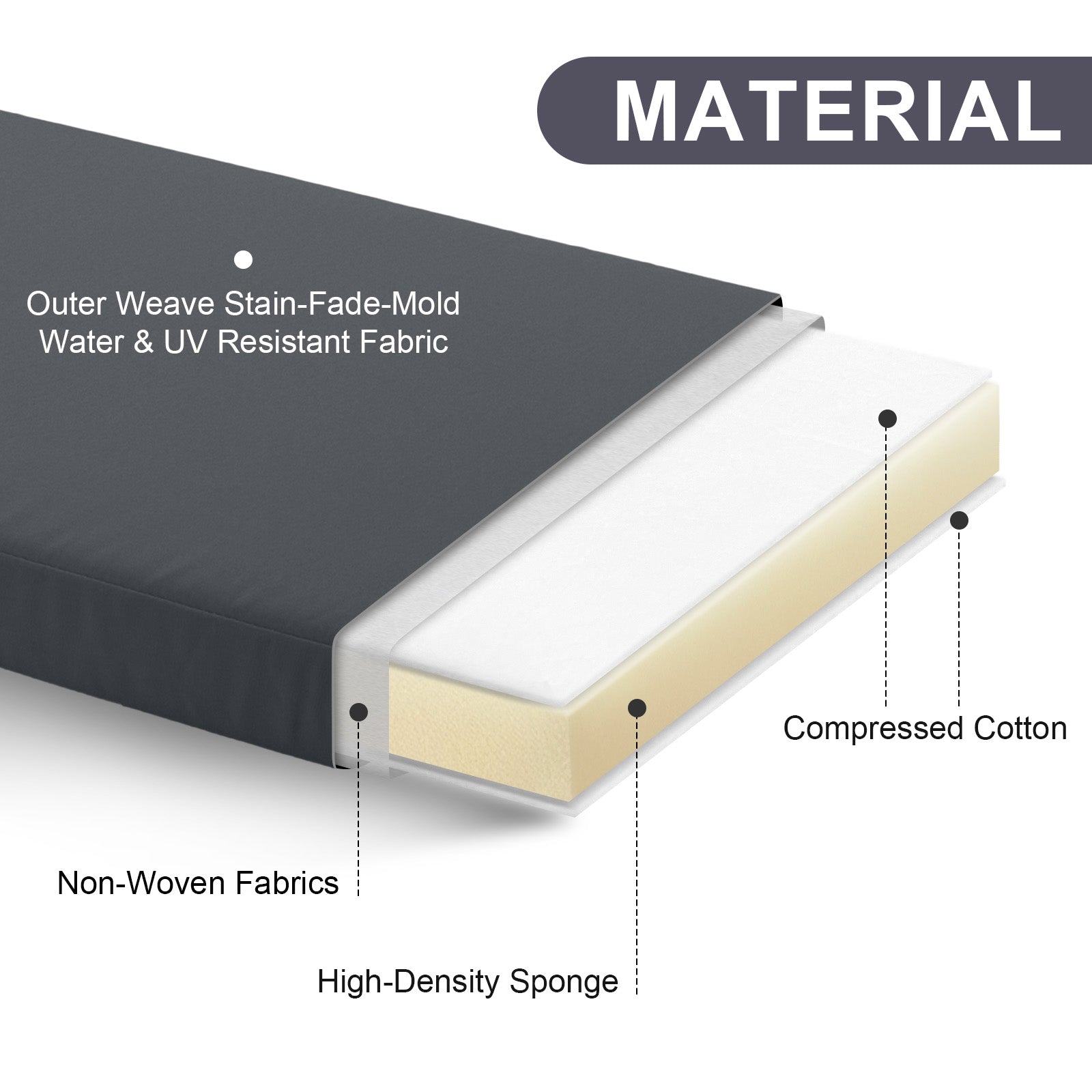 - 〖THICKEN CUSHIONS & SEATINGS〗:Removable Zipper Designed,the seat cushion is 3.5”thickness,the back cushion is 3.5” thickness,padded with high density foam.Good quality cushions makes you feel very comfortable.